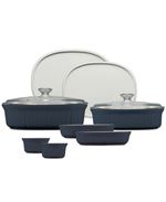 Corningware's iconic fluted bakeware is updated with contemporary color in this stylishly functional 10-piece set. The stoneware pieces give you oven-to-table versatility.